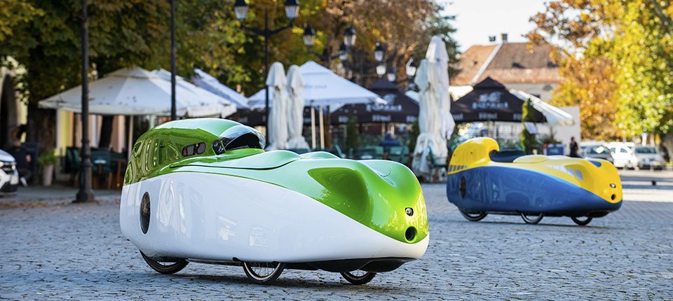 Velomobiles are among the fastest and most efficient muscle-powered means of transport. Due to the small cross-sectional surface and excellent aerodynamics, speeds and distances are possible which regularly are reserved to professionals on racing bikes in larger groups. The drive technology is based on conventional bicycle technology. The vehicle is fully equipped for everyday road use with lights, indicators and horn. It is a standard vehicle that can be purchased from a velomobile dealer.