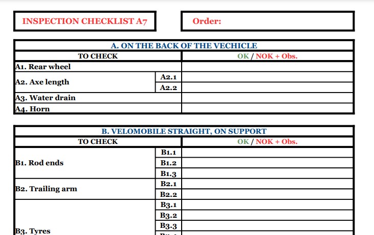We created these files so you can make the inspection of your velomobile. The inspection manual contains a lot of details and instructions that will guide you on how to make the inspection for different areas of the Alpha Series.