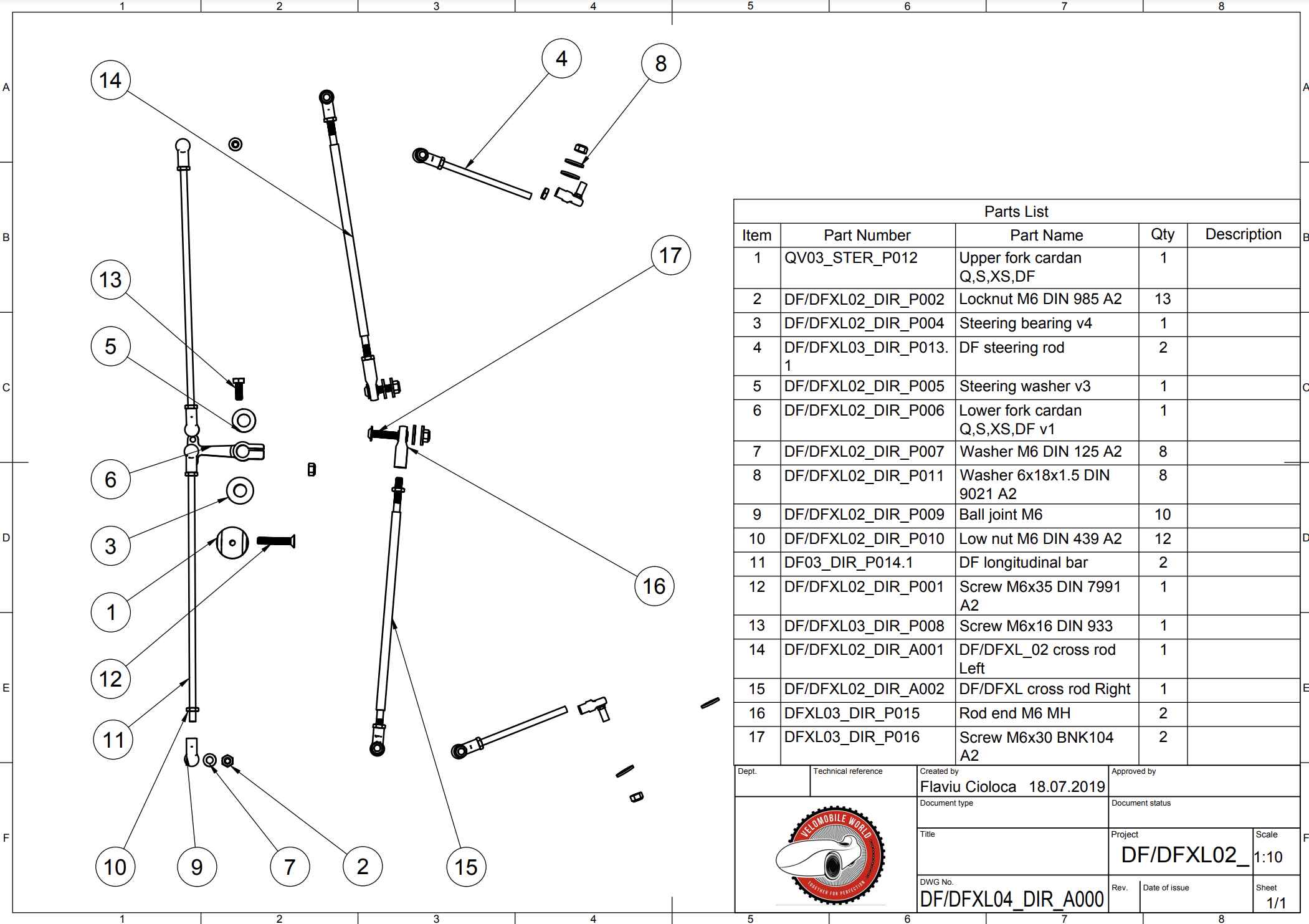Drawing DF_DFXL04_DIR_A000 provides the detailed assembly view of all wishbone components. This document shows proper component relationships and assembly order.