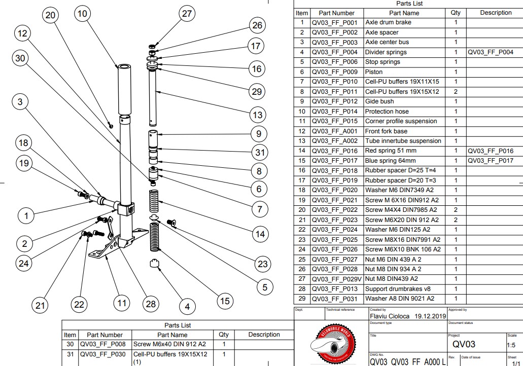 Here you can find technical support information for Quatrevelo “front suspension” parts. On this page you can see the exploded view of the front fork assembly. If you have questions do not hesitate to contact us, we would like to help you.